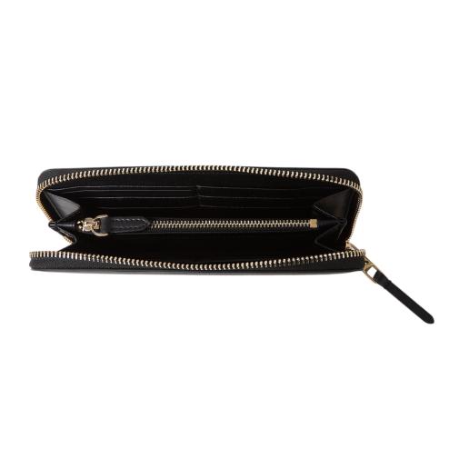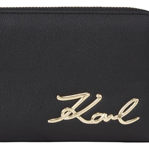 Wallet black, zip closure in gold-coloured metal, inner paper pockets, inner coin compartment with zipper, Karl signature logo in gold-colored metal.