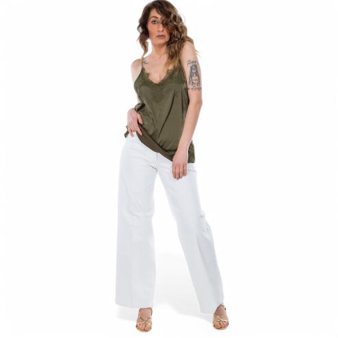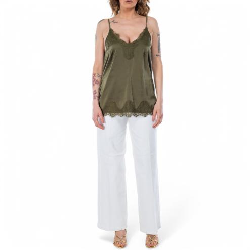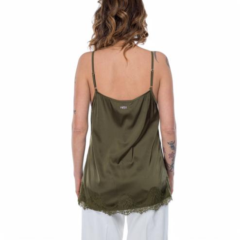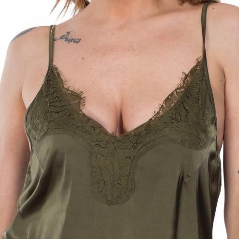 NoSecrets satin top green with lace