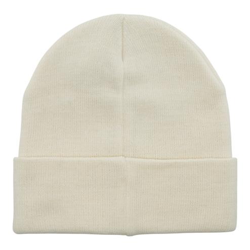 Winter hat of beige wool with contrasting Hinnominate logo of black color.