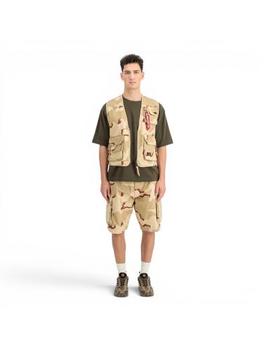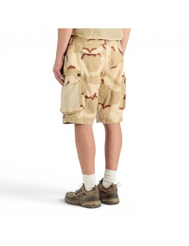 Short da uomo dal design tecnico e funzionale, realizzati in tessuto leggero con stampa camo desert, perfetti per affrontare la stagione estiva con uno stile deciso e contemporaneo. Il modello presenta una struttura utility con vita regolabile e fit confortevole, pensato per garantire libertà di movimento durante tutta la giornata.