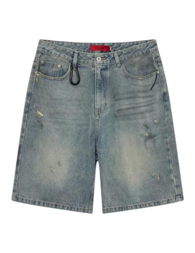 Acupuncture bermuda in denim chiaro con rotture
