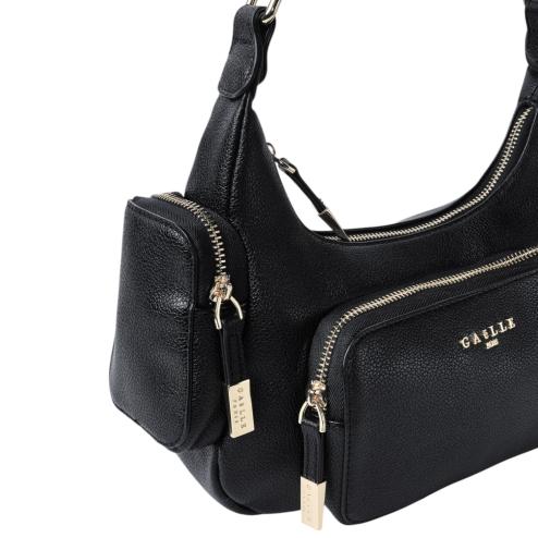 Stile urbano e funzionalità impeccabile. La borsa a spalla Pocket Gaelle in ecopelle nera è perfetta per chi ama un look raffinato e pratico. Realizzata con materiali di alta qualità, questa borsa elegante e versatile si distingue per le sue tasche esterne con zip, il logo frontale in metallo dorato e il manico fisso, garantendo praticità senza rinunciare allo stile.