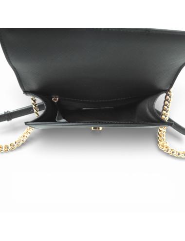 La chiusura con patta garantisce praticità e sicurezza durante l’uso. L’interno consente di organizzare l’essenziale in modo funzionale, rendendo la borsa adatta sia al giorno che alla sera.