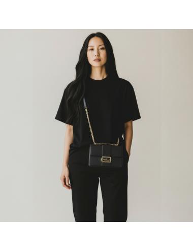 - Dettagli: Tracolla a catena dorata, logo frontale in metallo