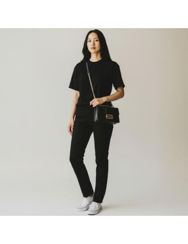 La chiusura con patta assicura praticità e sicurezza, mentre l’interno consente di organizzare l’essenziale con facilità. Una borsa versatile, perfetta sia per look da giorno che per outfit serali più curati.