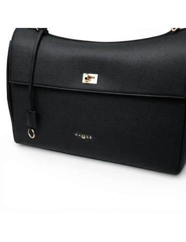 Realizzata in ecopelle effetto martellato, compatta e resistente. La chiusura con patta e twist-lock in metallo dorato valorizza il frontale con un dettaglio premium, mentre il logo GAËLLE PARIS gold firma il design con carattere distintivo.