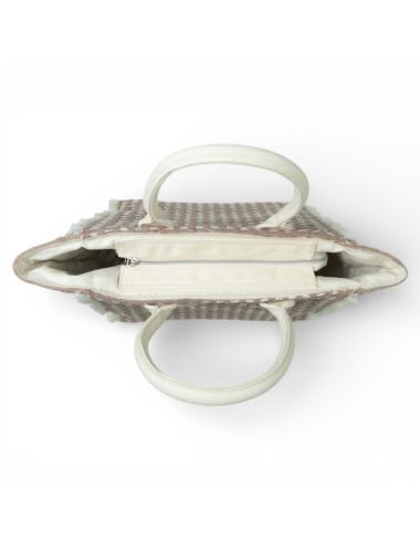 La costruzione morbida consente alla borsa di adattarsi facilmente al contenuto, offrendo flessibilità d’uso durante tutta la giornata. Il tessuto in cotone intrecciato garantisce una sensazione naturale al tatto e una buona resistenza all’utilizzo quotidiano, rendendo il modello pratico ma allo stesso tempo ricercato.