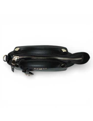 Realizzata in ecopelle effetto martellato, presenta logo GAËLLE PARIS in metallo dorato sul frontale e chiusura superiore con zip metallica gold. Il nero valorizza l’hardware oro creando un contrasto pulito e commerciale.