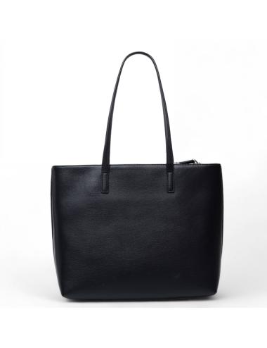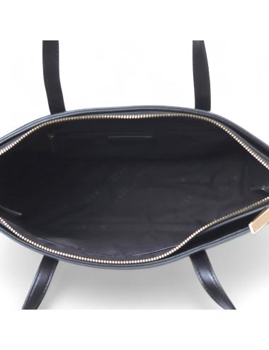 Borsa shopping in ecopelle nera con doppio manico e zip superiore