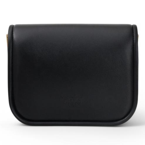 La Pinko Borsa Love Box FL Mini nera è un accessorio sofisticato e versatile, perfetto per completare look eleganti e raffinati. Realizzata in pelle morbida nera, presenta una chiusura magnetica impreziosita dall'iconica fibbia Love Birds Diamond Cut in metallo bronzo.