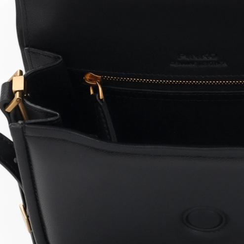Borsa Love Box in pelle morbida colore nero, chiusura magnetica con fibbia in metallo bronzo Love Birds Diamond Cut, interno rivestito in tessuto nero, tasca interna con chiusura zip. Tracolla sottile regolabile in pelle in tono.