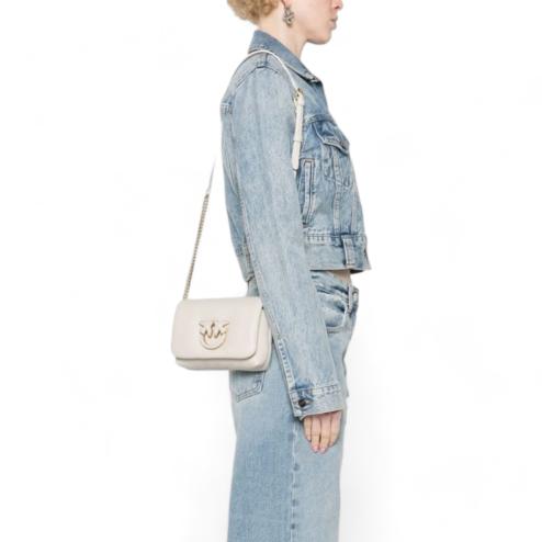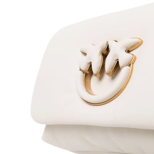 Pinko borsa bianca Baby Love click puff realizzata con una delicata finitura in nappa soffice. La chiusura è enfatizzata dall'inconfondibile fibbia in metallo Love Birds Diamond Cut, caratterizzata da un design tagliato con precisione e rifinita con smalto tono su tono.
