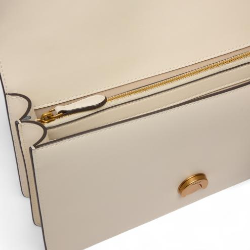 Borsa a mano media in pelle color panna con logo Love Birds e catena dorata