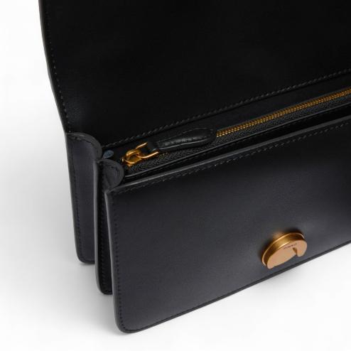 Borsa a tracolla piccola in pelle nera con logo Love Birds e catena dorata