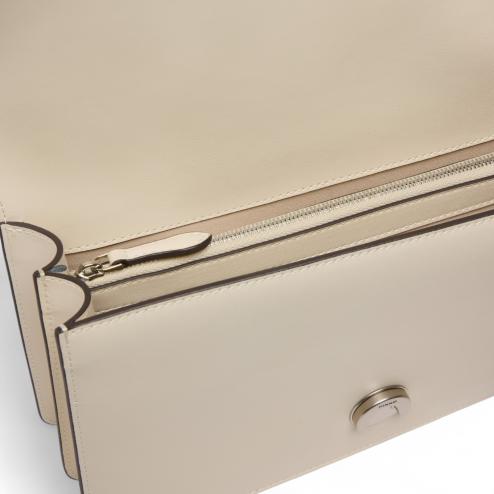 Borsa a mano media in pelle color panna con logo Love Birds e catena argento