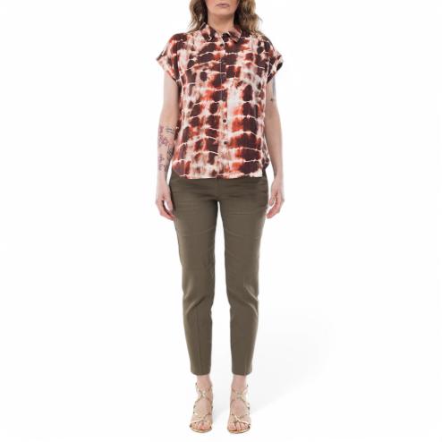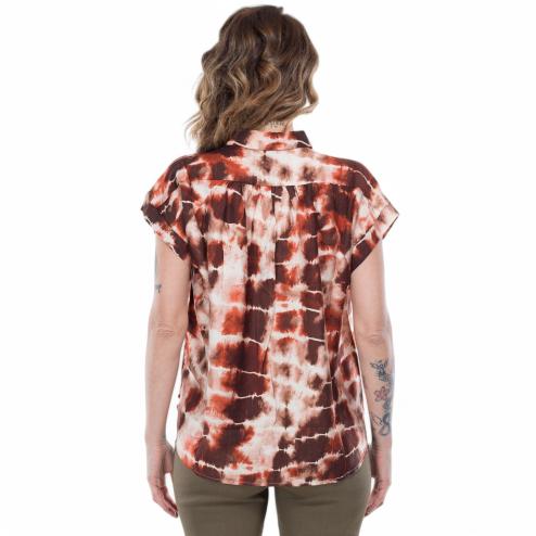 Camicia tie-dye da donna con i toni del marrone maniche corte e bottoni a vista.