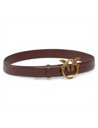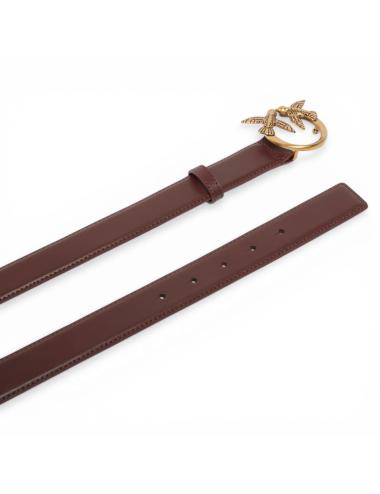 Pinko cintura in pelle burgundy con fibbia Love Birds 3 cm