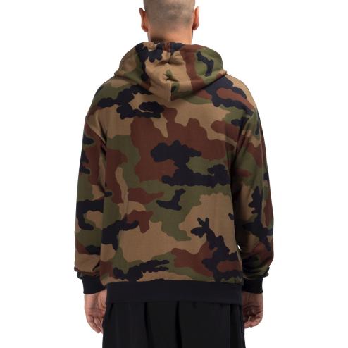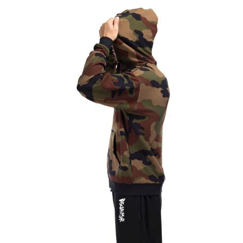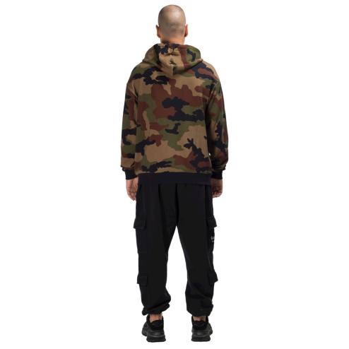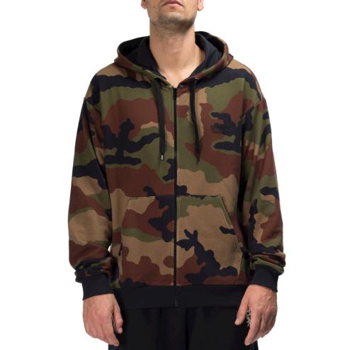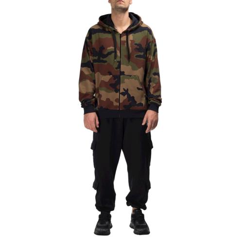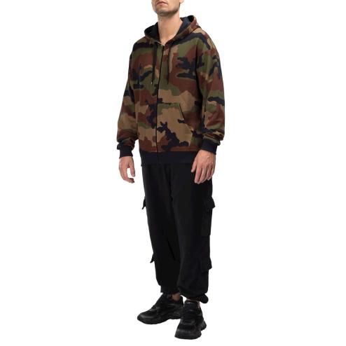 Felpa uomo con cappuccio in cotone jersey verde camouflage, cerniera zip , cappuccio con cordoncino a nero.