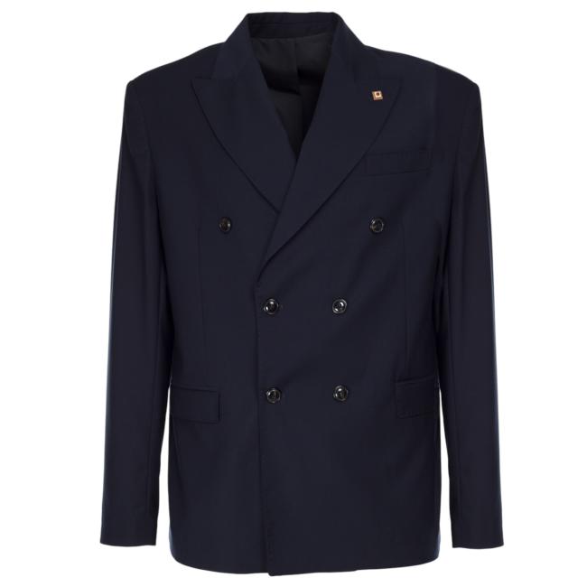 Outfit abito doppiopetto blu composto da giacca in cotone sfoderato blu modello doppiopetto e pantalone classico.