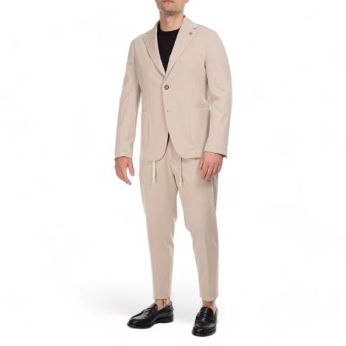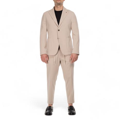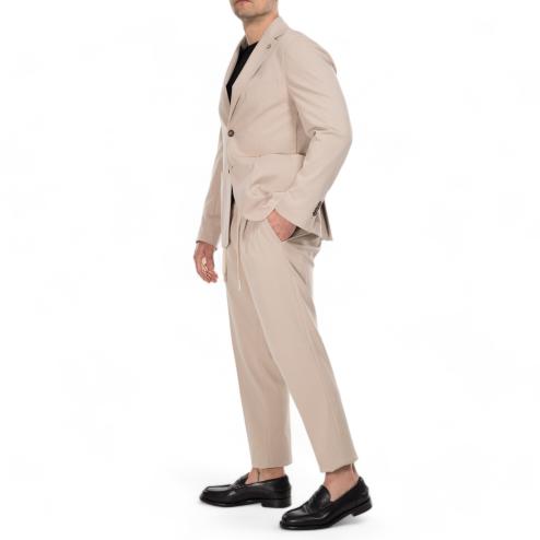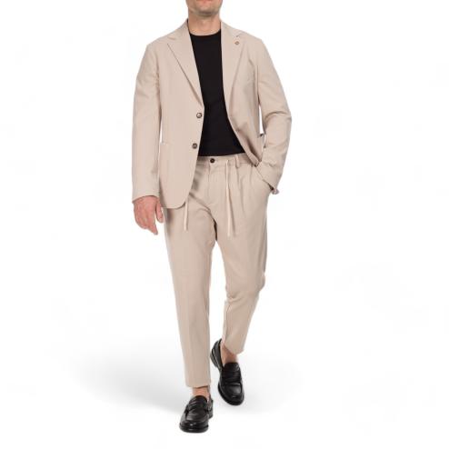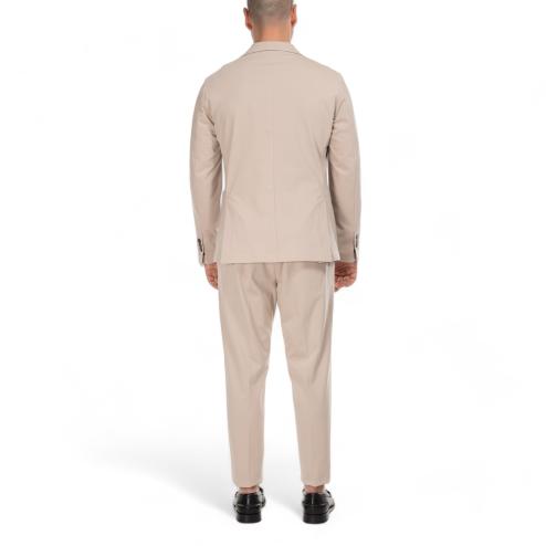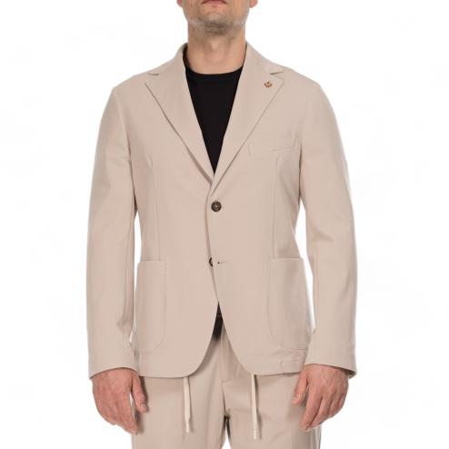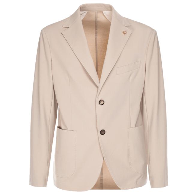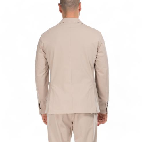 Giacca in tessuto punto Milano sfoderato colore beige chiaro 2 bottoni, vestibilità slim, tasche sartoriali, taschino esterno, e 2 taschini interni.