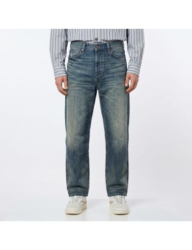 Jeans uomo indaco con baffo posteriore a contrasto e fit relaxed