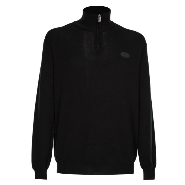 Maglione da uomo colore nero con zip sul collo , zip metallica a vista.