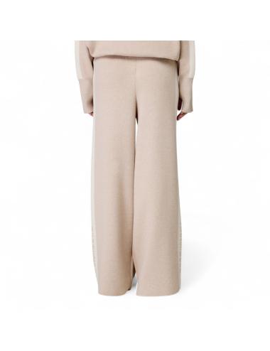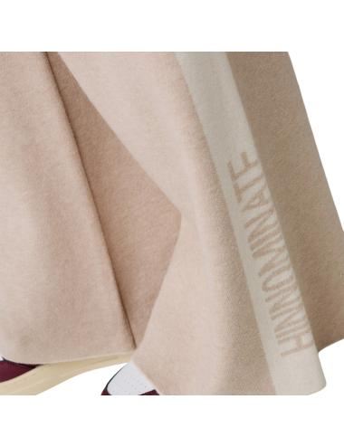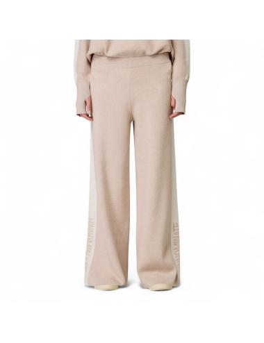 Il taglio a palazzo dona un movimento naturale e armonioso, mentre le bande laterali in contrasto con il logo HINNOMINATE lavorato a punto rovescio aggiungono un tocco contemporaneo e ricercato. La tonalità beige sand illumina il look con una delicatezza sofisticata, perfetta per la stagione autunnale e invernale.