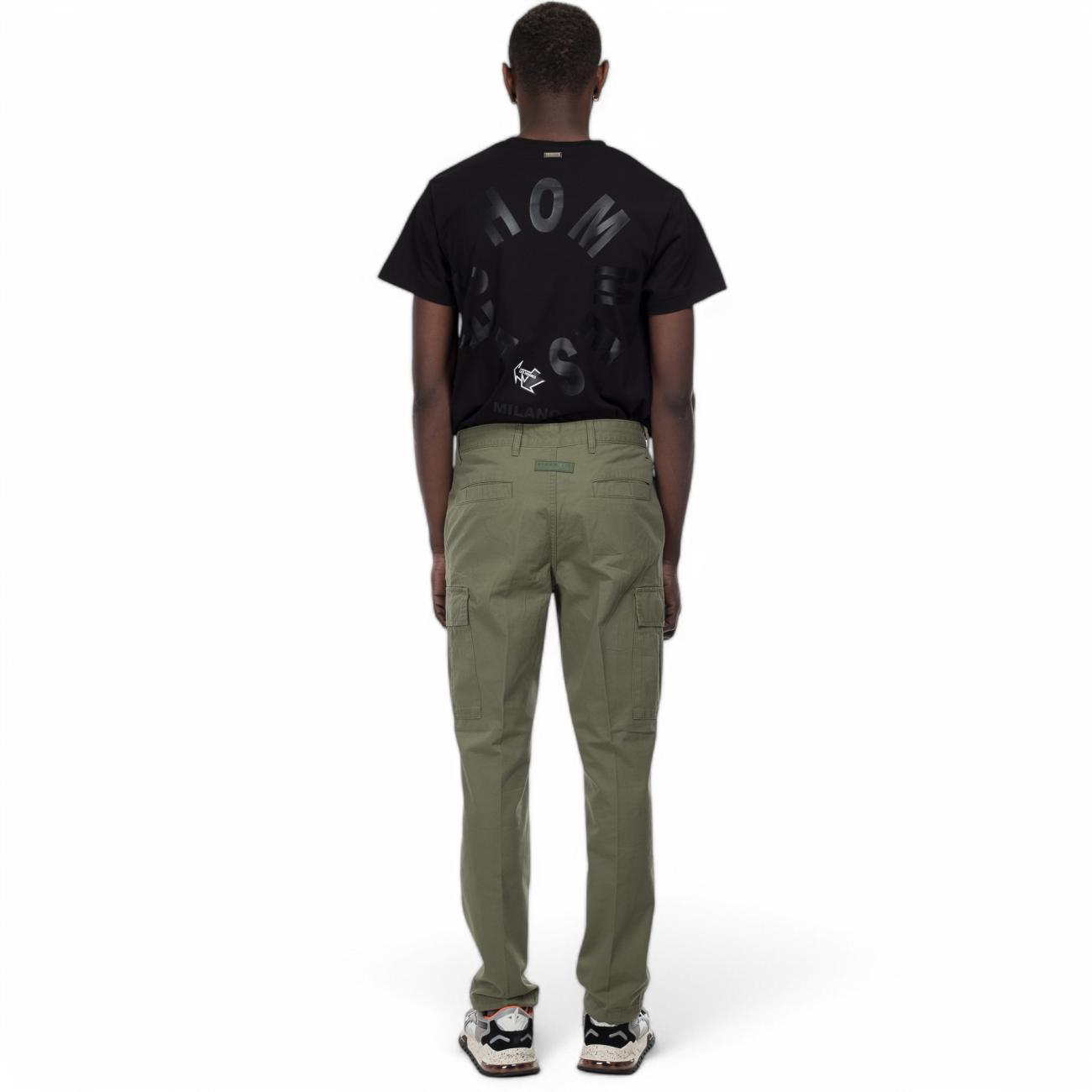 Pantalone cargo da uomo in tessuto di cotone di colore verde militare, dal design cargo con ampie tasche laterali che conferiscono un tocco pratico ed esteticamente interessante. La gamba morbida assicura una vestibilità comoda e moderna, perfetta per chi cerca un look casual ma con stile. Ideale per un outfit quotidiano, che combina funzionalità e tendenze attuali.