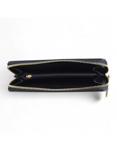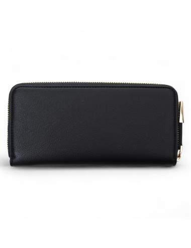 Portafoglio in ecopelle bottalata nera con logo dorato e chiusura zip