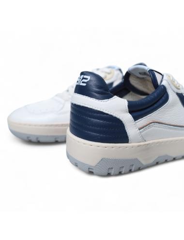 Le 4B12 Play Olimpia D201 rappresentano una sneaker dal carattere moderno e sportivo, ideale per completare outfit casual e urban. Realizzate in pelle bianca con inserti tono su tono e spoiler in pelle blu, si distinguono per il contrasto cromatico elegante e versatile.