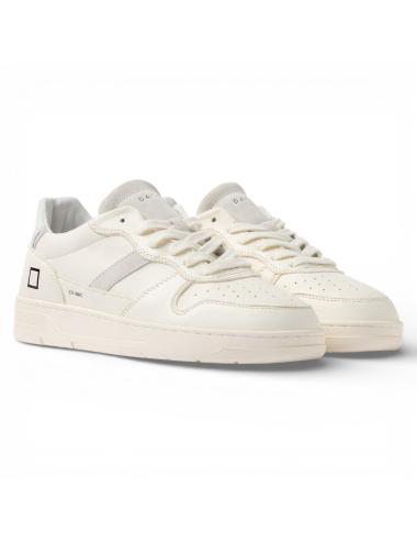 La sneaker D.A.T.E. Court 2.0 Mono White è una low-top premium Made in Italy con posizionamento clean-luxury. Estetica total white, linee essenziali e design minimal: modello core per outfit quotidiani puliti e versatili.