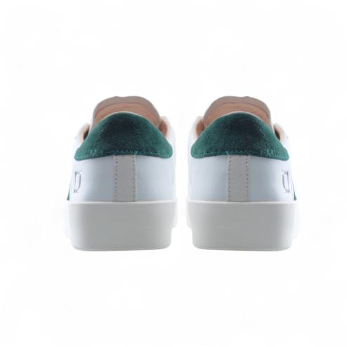 Sneaker bassa in pelle bianca con dettagli in suede verde