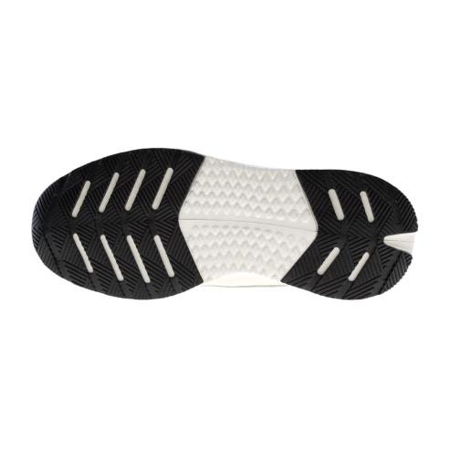 Sneaker running uomo in nylon bianco, inserti in pelle scamosciata grigio chiar, dettagli in pelle scamosciata bianca, profili in tessuto reflective, lacci tubolari in cotone bianco, para running bianca in gomma leggera rialzata 3,5 cm, plantare interno in lattice rialzato 2 cm rivestito in pelle.