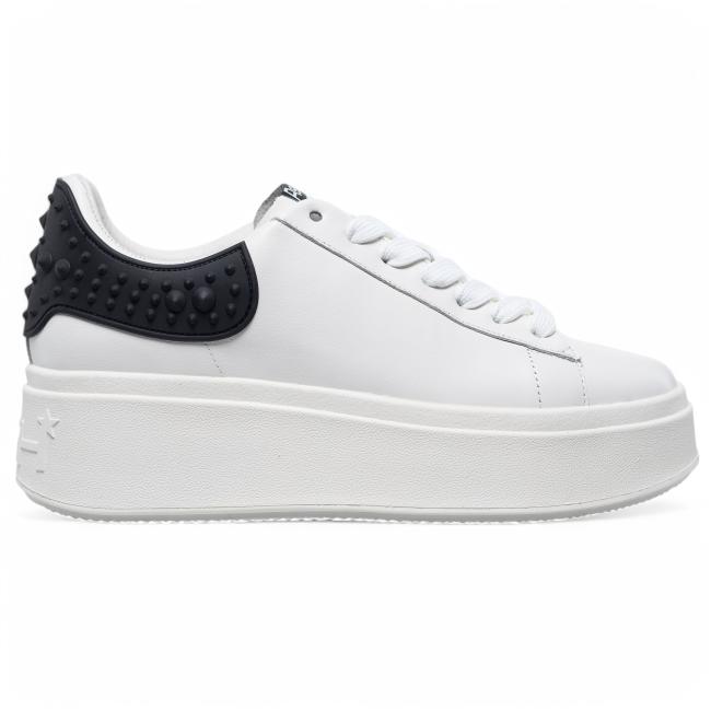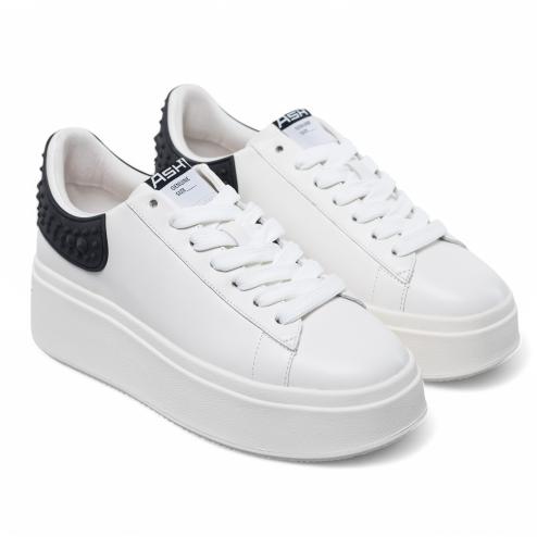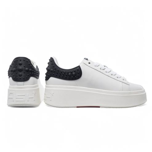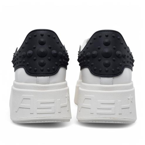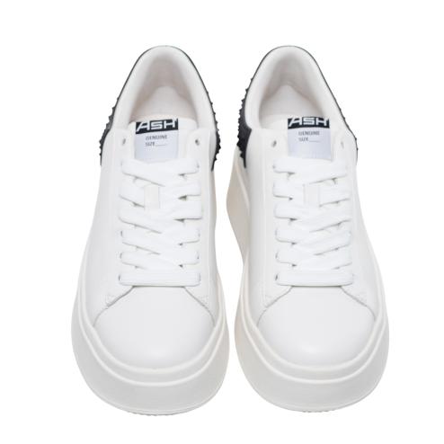 Le Ash Moby Rubber Bianco Nero sono sneakers platform dal design moderno e grintoso. La tomaia e l’interno in pelle bianca garantiscono un look pulito e versatile, mentre l’inserto sul tallone in gomma nera con borchie gommate aggiunge un dettaglio audace e distintivo. La para ultraleggera alta 6 cm dona slancio alla figura senza compromettere la comodità. I lacci bianchi in cotone assicurano una calzata perfetta, mentre la soletta interna in lattice rialzata e rivestita in pelle offre un supporto confortevole per un utilizzo quotidiano. Perfette per chi cerca una sneaker di tendenza con un tocco urban-chic.