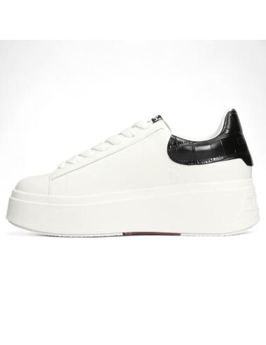 Le Ash Moby sono l’incontro perfetto tra stile contemporaneo e spirito urbano. Realizzate in pelle bianca di alta qualità, queste sneakers si distinguono per il loro dettaglio in pelle effetto coccodrillo sul tallone, che aggiunge un tocco wild e sofisticato. La para ultraleggera alta 6 cm offre un effetto slanciato mantenendo il massimo comfort, mentre la soletta interna rialzata in lattice rivestita in pelle assicura un sostegno ottimale. Ideali per chi ama distinguersi con un look casual-chic dalle linee pulite e trendy.