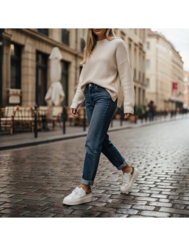 Le Ash Moby Bianco Leopard sono l’incontro perfetto tra stile contemporaneo e spirito urbano. Realizzate in pelle bianca di alta qualità, queste sneakers si distinguono per il loro dettaglio in cavallino leopardato effetto used sul tallone, che aggiunge un tocco wild e sofisticato. La para ultraleggera alta 6 cm offre un effetto slanciato mantenendo il massimo comfort, mentre la soletta interna rialzata in lattice rivestita in pelle assicura un sostegno ottimale. Ideali per chi ama distinguersi con un look casual-chic dalle linee pulite e trendy.
