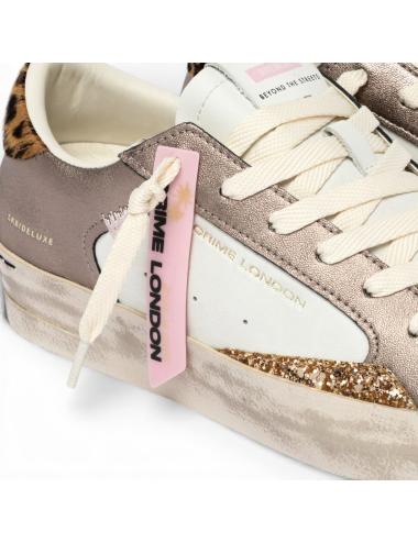 La sneaker Crime London SK8 Deluxe Animalier è una low-top premium Made in Italy con posizionamento fashion-statement. Mix di glitter e inserti animalier con effetto vintage: prodotto hero per look decisi e ad alto impatto.
