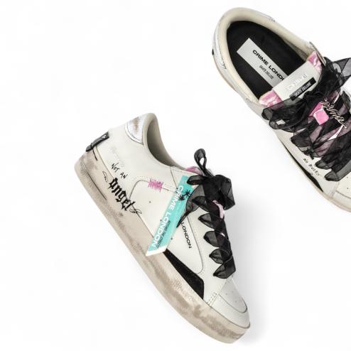 - Dettagli : Grafica "Not an Angel", lacci in tessuto, logo Crime London