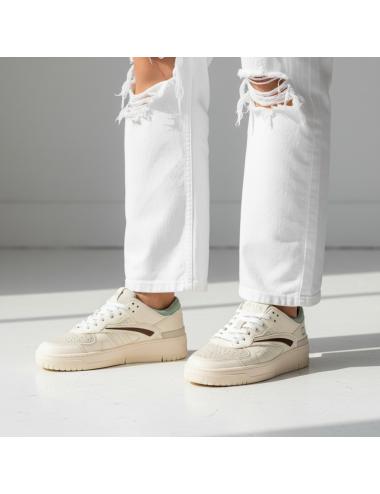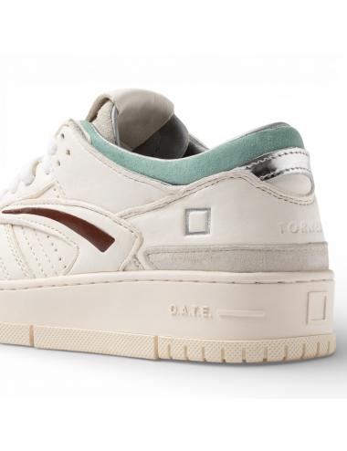 La punta traforata favorisce la traspirabilità, mentre la fodera in pelle e spugna di cotone garantisce una calzata confortevole. I lacci in cotone e il logo D.A.T.E. impresso completano il look con un tocco distintivo.