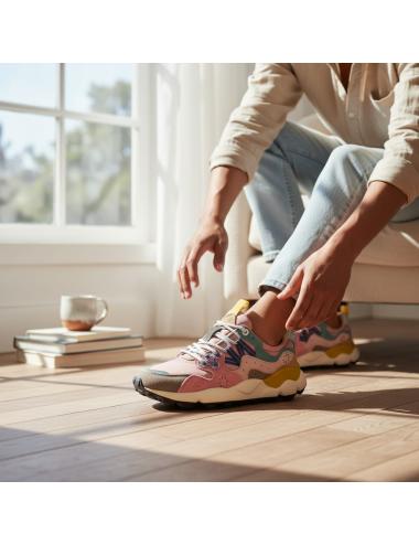 La FLOWER MOUNTAIN Yamano 3 Woman è una sneaker pensata per un utilizzo urbano, che combina estetica outdoor e dettagli tecnici. Il design multicolor nei toni rosa cipria la rende distintiva e facilmente abbinabile a look casual e sportivi.