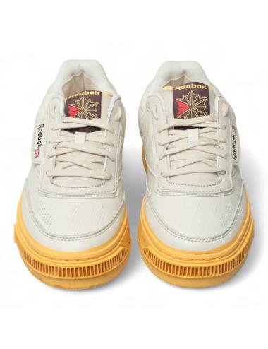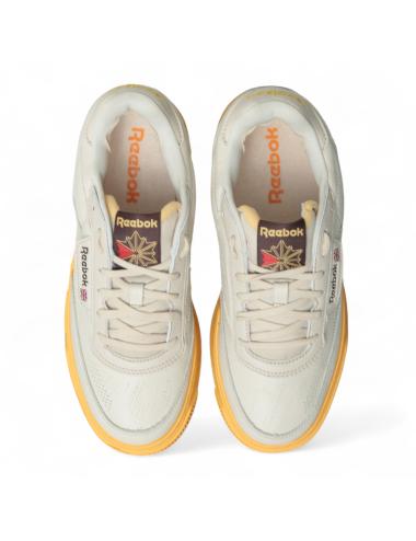 Le Reebok Club C LTD Painted White rivisitano l’iconica silhouette tennis con un tocco di originalità e carattere. La tomaia in morbida pelle premium color bianco panna è impreziosita da una suola dipinta a mano in tonalità giallo senape, per un contrasto deciso e contemporaneo.