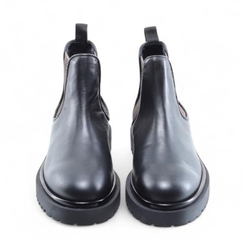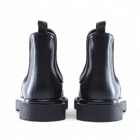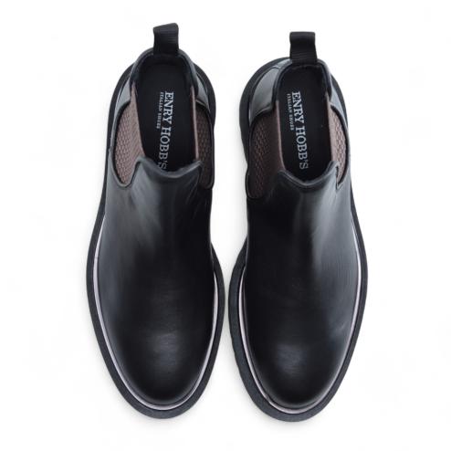 Il Chelsea Boot Parma di Enry Hobb’s rappresenta un equilibrio perfetto tra artigianalità italiana e stile contemporaneo. Realizzato in pelle liscia nera di alta qualità, è impreziosito dal caratteristico inserto laterale in elastico intrecciato, che garantisce comfort e praticità nella calzata.