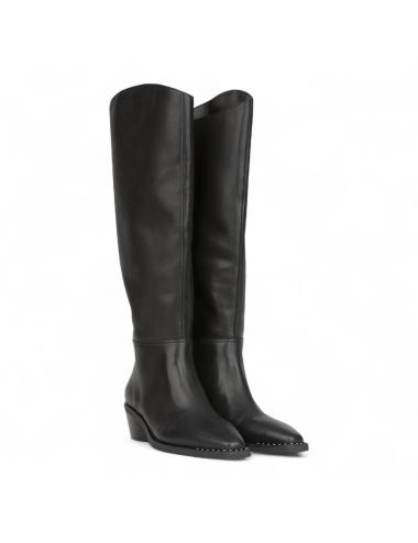 Gli stivali Ash Harpo Black sono una scelta elegante e versatile, perfetti per chi desidera unire comfort e raffinatezza. Realizzati interamente in pelle con fodera in tessuto e pelle, presentano un design lineare con gambale alto e punta leggermente affusolata. Il tacco squadrato di 5 cm aggiunge un tocco femminile e garantisce stabilità e comodità anche nelle lunghe giornate.