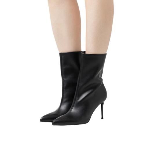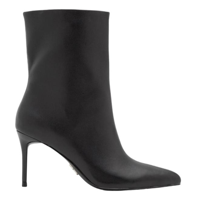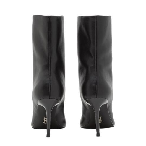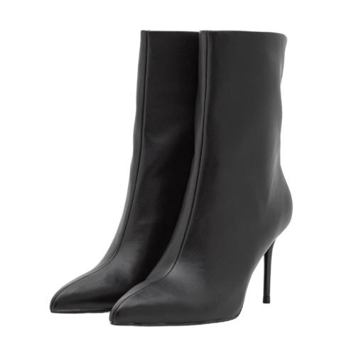 Stivaletti a punta donna in ecopelle nera, tacco a spillo lucido alto 8,5 cm.