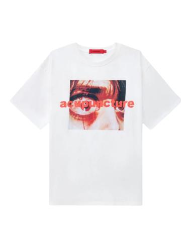 T-shirt uomo Acupuncture bianca con stampa grafica frontale e logo a contrasto, perfetta per uno stile streetwear moderno e d’impatto. Il design con print fotografico e scritta bold aggiunge personalità al capo, rendendolo distintivo e facilmente riconoscibile.