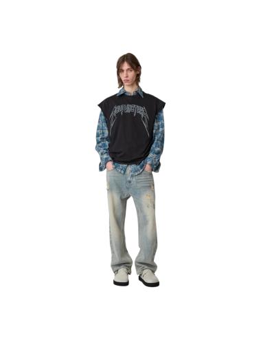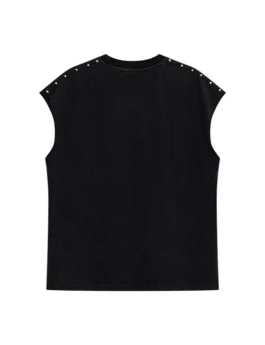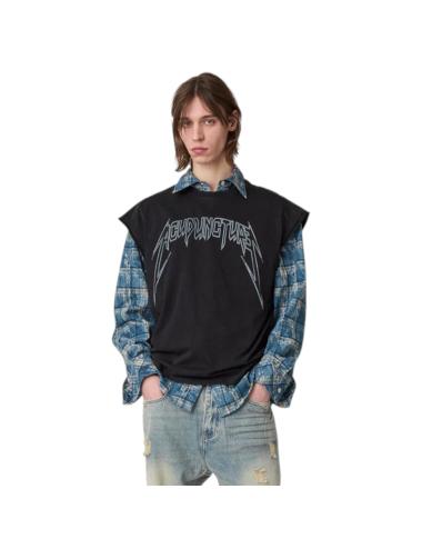 Canotta uomo Acupuncture nera effetto washed con stampa frontale logo in stile metal, pensata per un look streetwear deciso e contemporaneo. Il design sleeveless valorizza le spalle e rende il capo perfetto per la stagione calda o per layering urbano.
