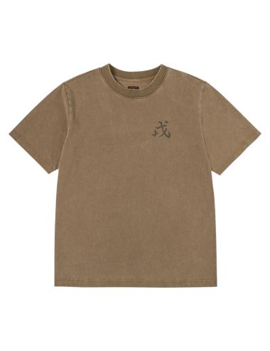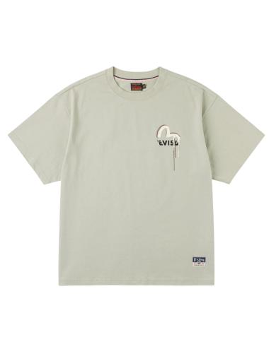 Evisu T-shirt beige con caratteri Kanji e logo Seagull