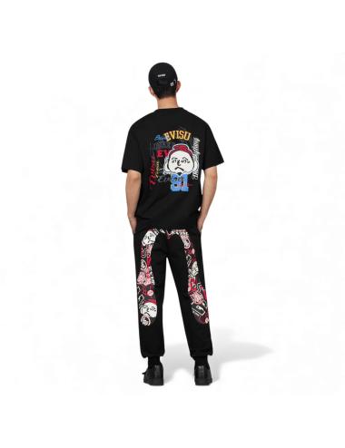 Il fronte, minimal e pulito, è decorato con un piccolo logo EVISU tono su tono, per un look bilanciato e riconoscibile. Un capo che unisce comfort quotidiano e identità grafica bold, pensato per chi vuole distinguersi con stile.
