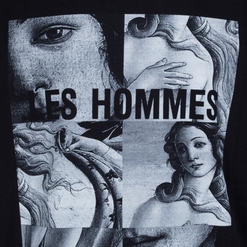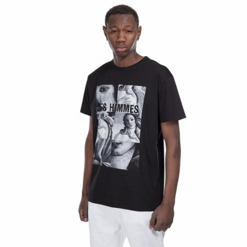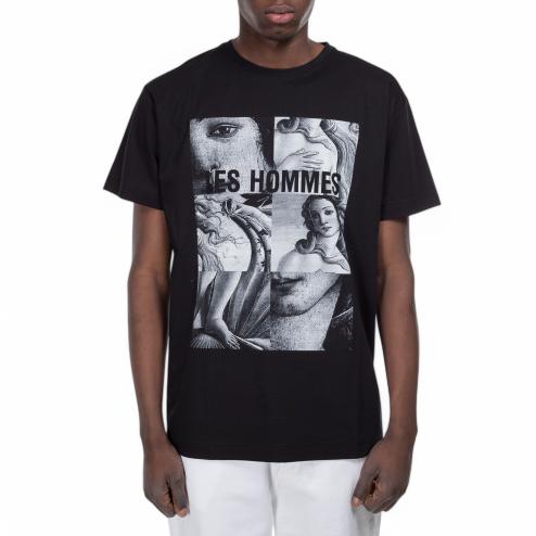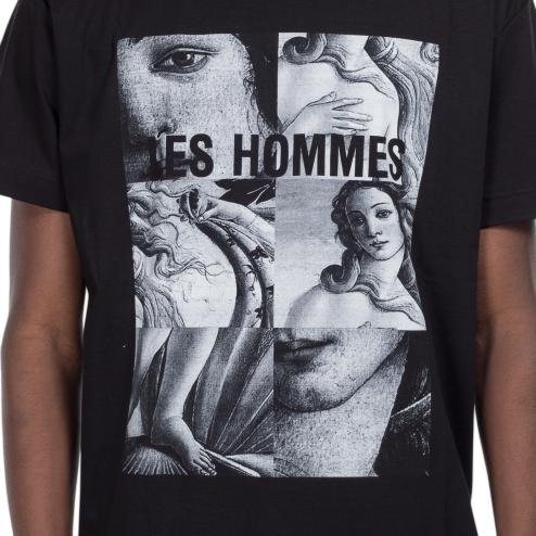 T-shirt da uomo in cotone nero, modello regular, con stampa frontale della Venere di Botticelli in chiave contemporanea, per un mix originale tra arte classica e streetwear.
