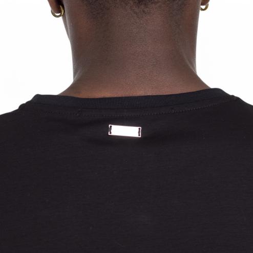 Una t-shirt nera di forte impatto visivo, perfetta per chi ama distinguersi e indossare capi che raccontano qualcosa in più. Ideale per dare un twist creativo a ogni outfit.